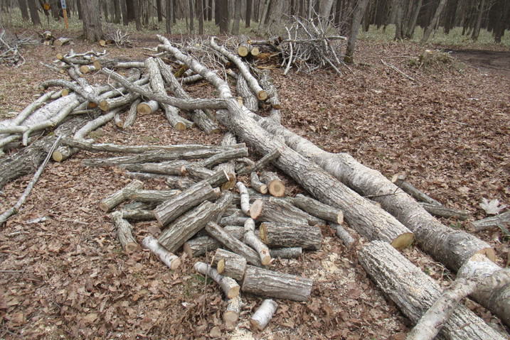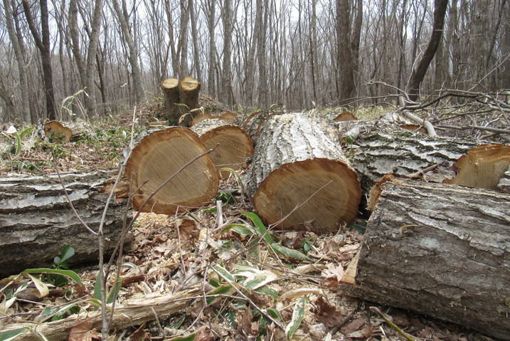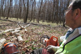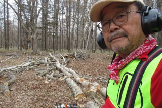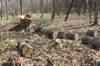 | ナニワズ咲く 2026/04/01 wed 晴れ 12℃ 内部6℃ ■ そろそろチェンソー仕事 ![]() ナニワズが完全に花を広げた。殺風景な雑木林ではひときわ華やいで見える。 ![]() エゾシカの狩猟期間が前日で終了したので、もうハンターがくることはまずないだろう。それに伴って、丸太の盗難のリスクもなくなるだろう。そろそろ、丸太の運び出しに合わせて玉切りを始めようと思う。 こちらは歳を考えて今日はまず肩慣らし、腕慣らしで、倒木やかかり木を片付けながら、最後はいくつかの玉切りを行った。幸い、チェンソーの目立てがうまくいっていてよく切れる。よく切れるのは疲れない最大の対策なのだけれども、7kg近いチェンソーを持ち歩いただけで明日は特に腰に疲れが残るだろうと思う。もろもろの野外活動の要を担う腰を十分長持ちさせるために、急な無理はしないでおこう。 (写真右)神籬のようなテラスから日差しを浴びた北側の林を眺める。そこには今日も好ましい風景が広がっていた。 休み休み、長く 2026/4/4 sat 晴れ 15℃ 中5℃ ■チェンソーで肩慣らしを始める ![]() 盗難に備えて丸太で放置していた長材を本気で玉切りを開始した。チェンソーが重く感じるし安全ブーツももちろん丸太も重い。下手をすれば10分ごとに立ち上がり腰を伸ばして、まさにシニアワークらしきものを続けていたら、2時間余りで3立法m位を片付けることができた。歳をとったらとったでそれなりのスピードというのがある。今日はそのコツが体にしみ込んだ気がする。朽ちる運命の落ち葉にまみれて燃え尽きる丸太に囲まれ、なんだかとても幸せな気分になる。 4/6 は薪ヤードの薪をタウンエーストラックで4往復して自宅に運ぶ予定だ。そのすぐあとには林に残してあるたくさんの長材を早々に玉切りして、薪ヤードに運び出し、連休に薪割と薪積みをして来年再来年の薪の用意が完了する。 ■タンチョウと会う ![]() 夕方、小屋から遠浅に向かう道すがら、畑にツルが見えた。繁殖がうまくいって道央圏でもあちこちで目撃されるようになった。絶滅危惧種の扱いも危惧しなくてもよいほどの扱いに替えられたときく。 大島山林のほうは最近モモンガがみられるといううわさがあり、バードウォッチャーが来ていると、団地のAさんがいう。今年の探鳥会は鳥だけでなく獣も山菜も、ということになって、フライヤーの書きぶりを少し変更した。 ■勇払原野と半世紀 昭和51年4月に第3セクター苫東に赴任したから、苫小牧に住んでこの4月に満50年になる。 最初の職場が25年目に倒産してその後札幌勤務となって2回職場が変わったが、住居を移さず週末は雑木林の手入れを続けたから、そのあとのNPOの16年を含め、勇払原野との付き合いだけがちょうど半世紀になったわけだ。 しがない勤め人人生だったわりに、定点で個々の風土に付き合えていることは実は得難い経験だと思える。転勤はしたが主たるフィールドは変わらなかった。じっと付き合えば土地の神様、産土もたまには微笑んでくれ、やがては本当の姿を見せてもくれる。有難い経験をさせてもらっている。 玉切り、二日目 2026/4/8 wed 晴れ 13℃ ![]() 玉切りを4時間。普段から昼食を取らない習慣で林に居っぱなしだから、実は仕事はそこそこはかどる。途中から太めの材を扱っていたので、ソーチェーンを特に切れ味がよいとされる刃が鋭角な「スーパー」に替えてから特に快調だった。しかし、根返りした太い木は重過ぎる。藪だしでトラックに積むのは一苦労するだろうと覚悟している 薪がゴールであれば、本当は根返りするほど大木にしてはいけないのであるが、ここの当初の保育のねらいは、美しいコナラの大木からなる雑木林風景を実現することにあったから、これはやむなし、だ。根返りや倒伏の都度、対応せざるを得ない。もちろん、放置も方法の一つだ。 今日の作業は数年前からの懸案だった根返り木を昨年11月に片づけた、そのまた後片付けである。来週あたり運び出す予定でそれでようやく完結である。掛かり木や周辺の間伐木の玉切りもあったので、夕方にはへとへとだった。 今日は楽ちん、里山的仕事の典型 2026/04/11 sat 曇り 13℃ 中10℃→20℃ ■小屋はエルミタージュ ![]() 雨が降りそうなので小屋周りの玉切りをする。まるで里山、あるいは裏山仕事の典型的な姿だ。小屋の丸太壁から15mしか離れていない場所で薪の丸太を玉切るのである。こんな楽な仕事ってあるだろうか。 小屋の時間とは何か、といつも思いを致す。心身ともに徹底的に「ひとり」になるのは曰く言い難い特別なひと時なのである。群れない、グループ活動はしない、という近年の姿勢転換はこの方が自然体で楽で、かつ行動より思索に向いているからである。 「楽」というのは隠れ家のように世間から断絶されるからであろう。「籠る」と表現してもいいが、となるとそれは隠れ家=エルミタージュ、ということになる。「小屋はエルミタージュ」、ふと思いついたこのフレーズはしばらく使えそ