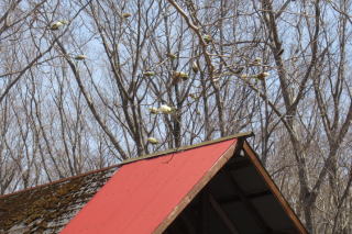 | 毎年通い詰めても、飽きることがない林。おそらく、雑木林の四季が変化に富んでいつもと同じということがないだけでなく、ここ勇払原野の里山が潜在させている魅力によるものだろう。 さらに一帯を小屋を中心にした定点で見ているからでもある。見ることは手入れすることであり、手入れは「長年月で付き合う造園」とほぼ同じだ。日常的に味わう自分にとっての理想郷、いわゆるユートピアがゴールであり、もともとはコナラの大木が居並ぶ美林を作りたかったのである。 産土を感じると何度も書いてきたけれども、それは樹木に囲まれて土地の神羅万象に神々を感じつながる場、神籬(ひもろぎ)に似た一面があることを知った。 |
