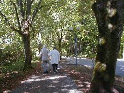 高齢化社会の典型的風景。手をたずさえて歩く。