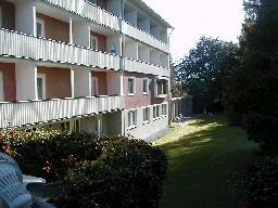 部屋は16畳ほどあり、バストイレ付きで芝生を望むベランダがある。また部屋には幅