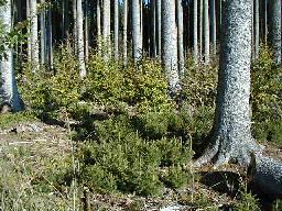 散策の途中の林に限ると、その多くはヨーロッパトウヒからなる針葉樹林で、林業行為