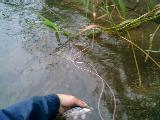白老川の本流に出てみる。魚体は大きくはないが、たいていは遊べる。おなかを膨らま