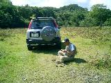 内してもらうことになった。林道を登ること20分、林の中の牧場というべき広場に車を止