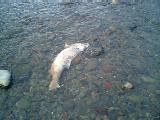 にサケが遡上していた。ヤマメのフライフィッシングはしばし、休憩に入る。ヤマメがナ