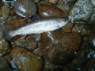 ジマスだった。ここで昼飯をとりつつ川面を見ると時折ライズする。食後、仙人が数回試みて