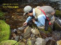 から上流へ。わたしはもうちょっと粘って15cmのアメマスをあげる。なかなかヒットしなかっ