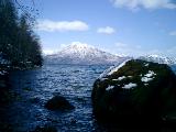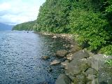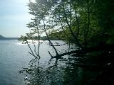 うだ。湖畔は水かさが一段と増し、山の縁ぎりぎりまで水がある。大岩に上ってみると、