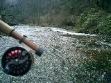 ![]() 水温は12度 ![]() ポイントは一杯に見えるが ![]() #2のロッドでならこのサイズは 楽しめる |