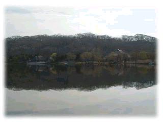 ←看板の対岸にアイヌ関係の博物館などがあるポロトコタンが見える。