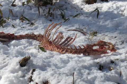 | 径に迷う 2025/02/15 sat 晴れ3℃ ■フットパスのトレースで このところ、除間伐後のシカと盗難対応が続く。シカがねぐらにしていないことはトレイルカメラで納得したが、同じころ合いに発生した丸太盗難が一度で終わらず、トレイルカメラを防犯カメラとして使用する展開になった。それで車を特定したので「警察通報の直前だ」という主旨の貼り紙をしたら、その後、轍は見えなくなった。2/12 は、小屋のドアに「防犯カメラ作動中」の貼り紙をして念押ししたところだった。 ![]() 大島山林では、除間伐材の藪だし、搬出作業が真っ盛りだった。わたしは作業の合間となる昼休みめがけて出かけて、フットパスウォーカーのためのトレースをした。30cm弱の積雪だけれども、ツボ足よりはるかに楽に歩けるから利用促進にもなり、事実喜ばれてもいるからだ。 ![]() 広場にちかいところは、この日のドライバーのurabe さんが朝ひと回りしたのでわたしはその奥を走ったが、あるところで迷子になった。というより、径を見失った。妙な気分になるのは、軽いパニックになるからだろう。アレッ、ここはどこだ? 1981年の映画でヘンリーフォンダが主演した映画『黄昏』をまたリアルに思い出した。径に迷ったときには必ず思い出すシーンに、もう何度となく出くわしているので、認知症の前触れか、といつも穏やかでないのである。 実際は雪でフットパスが判然としないだけだから、そう大袈裟に言わなくても良いのだが、幾度となく使ってきた径だから迷うはずがないという思い込みがあるのだろう。それができないショックだ。方向感覚や記憶力、そして判断のスピード感、これらがいずれも落ちているのだから仕方がない。 歳相応に、もう一度めぐるか、ゆっくり薮のなかにルートを探せばよいのだ。見失ったルートは、ヤブをくぐって最後は斜面を下り見慣れた旧知のルートに出た。 ■変わり果てた姿 ![]() 先日アップしたシカの躯は、無残な姿になっていた。というか、きれいにしゃぶられて、毛皮は付近に引き出されてあった。まさにほとんど身はついておらず、よくもまあ余すところなく、と感嘆せずにおれなかった。狩猟によって打ち捨てられたということを別にすると、マイナス20度近い厳冬期の自然界のきびしさと食のつながりを目の当たりにする事件だった。お見事、と言いたい気もする。 ![]() 室温は入室時マイナス4℃、外で選木などをしたり本を読んだりしている間に家に帰るころは18℃になった。小屋はテーブルとストーブと本棚と焚き付けなどで、窮屈なくらいだが、ちょうど田淵義雄氏の寒山の森の家づくりの本を開きながら、小屋を持つことの男の夢を反芻していた。ひとり用かふたり用にカスタマイズしたこの小屋のありようは悪くないな、と思うようになってきた。 ![]() 盗難によってやり直すことになった除間伐の選木のために、スン―シューをはいて回った。積雪は30cmほどだがスノーシューを使った方がはるかに楽だった。 2025年冬の山小屋生活、ドイツ語でいうヒュッテン・レーベン、かくの如し、である。 雑木林の愉しみ 2025/02/19 wed 晴れ 2℃ ■春の山仕事 林を相手にしていると、楽しみがいろいろやってくる。まじめな仕事らしい仕事で言えば、まず、そのシーズンに除間伐する対象の木を選ぶ「選木作業」、そしてもう一つは、その結果生産されて運び出されるだろう材の量の推定である。 勘違いされると困るが、材は、きょう日の世間の扱いのように放置することもできるのを、コモンズは冬の間にわざわざ手間をかけてスノーモービルで運び出して利用可能なように加工していくのである。「放置すればゴミ、運び出して利用すれば資源」という原理原則がある。語るのが面倒くさいが、ここのコンセンサスも社会の仕組みも全くできずに、再生可能エネルギーが語られる。そのあたりも含め、行政の特に環境エネルギーの視点について不満があるが、それはさておこう。今日は、その「生産量の推定」という個人的な楽しみのために、大島山林をひとり歩いた。 ![]() 2月も半ばになると、林は大きく春に傾く。昨日は24節気の「雨水」、そして間もなく「啓蟄」となる。林を歩くにはもうサングラスが必携で、そのまぶしすぎる陽光が、こころを少し浮き立たせる。雑木林を歩くなら、今である。 先日付けた walker 用のスノモのトレースはやはりありがたい。スムーズに苦労なく歩くことができた。そして小一時間、胸の膨らむ時間を過ごせた。こういう時間、体験は勇払原野の身近な市民、町民にもっと味わってほしいと思う。その「勇払原野の風土の共有」を今年は再び少しまじめにやっていこうと思う。 ![]() 直径60cmのコナラ。よくぞ、いてくれるなあ、と見上げる。ところどころに残された大木は、薪に利用するにはもう太すぎる。倒れるまで見届けることにしよう。万が一、倒れたら、薪にする。これが勇払原野の雑木林の扱い方のもう一つのルールであると悟った。 立ち止ま
