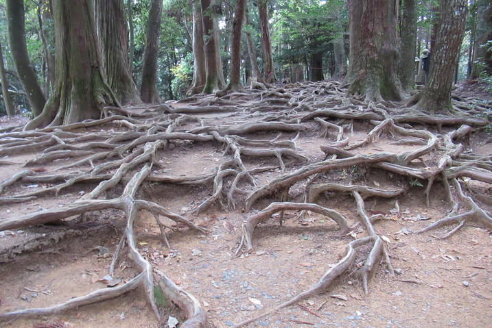 | 今日も小春日和 2025/11/5 wed 13℃ 室内2℃→20℃ 市街地では数日、霜が降りたのだが再び温暖な日がやって来た。薪ストーブは薪3本焚いただけで20度まで上がった。小屋の「雑木帳」をみると、2025(令和7)年の正月から今日が80回目の小屋番である。なにかかにか、いつもやるべき雑用と山仕事があるのだから、里山というのが、いかに人の手間を経て「手自然」になっていくかを、この手間日数だけでも示していると言える。 ![]() 今日は何本かを伐倒して整理した後、3本株立ちのシラカバを追いヅル伐りで倒した。すでに1棚(約3か月分)の薪はできただろう。天気のいい日に、ゆっくりと、わずかな実働時間で、何に追われることなく、マイペースで、雑木林のガーデニングのつもりで修景し、翌春には翌々年以後の薪ができあがる。 ![]() 先日は落ち葉でテラスの板が見えないほどだったのに、掃いた後今日まで、すっかり落ちる葉もなくなったようだ。落ち葉が林床や路面を隠し、林は美しく明るく感じられるようになった。 落ち葉に見入る 2025/11/09 sun くもり 11℃ 中-1℃→20℃ ![]() 11/7の立冬の夜から雪が降りだし10cmも積もった。とても夏タイヤで林に行く気にもなれず、なんとなく珍しく熱っぽかったので休養日にして、今日日曜に小屋に来た。案の定、葉っぱはほとんど落ちて圧倒的な落ち葉の世界に代わった。落ち葉大好き人間だから、落ち葉浄土という言葉を思い出しながら見入ってしまう。 窓の下に薪を補給したり、来週小屋泊をしたいというメンバーのために若干備品を用意したりしていると昼近くになったので、チェンソーはやめて読書時間に振り向ける。池澤夏樹著『パレオマニア~大英博物館からの13の旅~』である。博覧強記というべきか、その縦横無尽さが面白い。 里山と古刹の森を歩く ~奈良・山の辺の道(北ルート)と京都・鞍馬寺&貴船神社~ 2025/11/10--14 古都の旅、今年は奈良・山の辺の道の北ルートと長谷寺をめぐって、京都に移動し琵琶湖疏水を舟で下ってから、京都北端にある鞍馬寺と貴船神社を歩いた。 ![]() 鞍馬寺は桂米朝の落語がきっかけで一度是非訪れたい古刹だった。噂に紐解いているうちにかなりのパワースポットのようにイメージが出来ていた。 入口の大杉は米国のセコイアを思わせる大木だった。樹齢800年、高さ53mと表示されていた。相当な氣が満ちているというのは貴船神社に続く坂道の両側の木々、森そのものである。叡山電車の終点から貴船神社の奥宮にたどり着き、再び叡山電車の貴船口に着くまでの約4時間、とっぷりとその森の中を歩いた。 鞍馬寺側はどうも白人旅行者、貴船神社側は中国語系の旅行者が多かったような気がする。わたしの感覚では以前から白人はスピリチャル系に感性や興味が高いような気がしていたから、なるほどと手前合点した。わたしの身の周りでは、竜安寺や清水寺など超有名な名刹の話しは出ても、鞍馬寺に行ったという話は聞いたことがなかった。京都の南の方にある日野・鴨長明の方丈庵と同様、少し遠くマニアックなところなのかもしれない。 ![]() 多くの人が訪れたのであろう、そして雨も多かったのであろう、坂道はすべて石段で土の流出対策がまめになされている。上の画像は鞍馬寺と貴船神社の間の峠で見た根っこ群であるが、なにか生命の源に通じるものを連想させる。近くは義経が天狗について武芸の修行をしたという故事のある場であり、その鍛錬が功を奏して義経は平家を打ち負かした、とある。 ![]() ぽっかり空が開く、というところがあまりない行程の中で、最後の貴船神社奥宮は珍しく空の開いた広場があり、社殿も大きくはないものだったが、舟形の石積みが地味に鎮座していた。最近1週間前のインスタには、安倍元首相の夫人が参拝している画像があると娘が教えてくれた。 ところで、小さな建物と広場と森、そして空というシンプルな空間構成は、実はわが静川の雑木林の小屋に通じるものがあると直感した。あのエリア、大事に守って育てていきたいと思う。 昼から7本の抜き切りをする 2025/11/15 sat くもり時々晴れ ![]() 午前中はチェンソーの自主研修でブルーテント内で座学と意見交換、わたしはメンバーが実技デモに入る前に静川の小屋に移動して11時から間伐に入る。丸太盗難を避けるべく、長材のまま林内に放置し、シカ猟の終わる4月から玉切りと軽トラによる藪出しを行う予定で、簡単な材の寄せと枝整理だけをすることにしている。 ![]() 今年のキノコは淡々としたものでお祭りのような騒ぎはなかった。クリタケはまだ黒ずんだまま腐れもしないで残っている。と、倒した枯れたサクラに、大きなシイタケが二つ出ていた。コモンズの現場で天然のシイタケを採ったのはこの50年近くで恐らく初めてか2,3回の珍しい経験だろうと思う。 里山風景観のエリアは着実に拡大している。次第にどこでも軽トラで入ることができるようになってきた。そうなるとまた、枝先が触れて抜き切りが必要になって、最