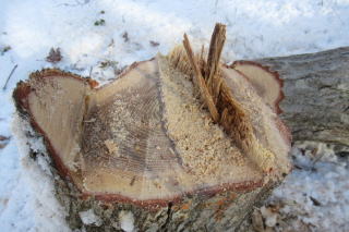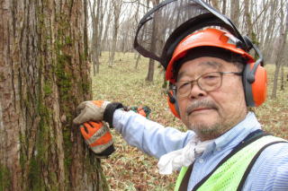 | 林への目配り 2025/12/03 wed くもり 5℃ 中-2℃→15℃ ■数年越しの片付け ![]() 根返り木は根がついているから、倒れて掛かり木になっても生きている。フットパスを歩く都度それをみていながら、つい面倒で数年放置してきた。それを2025年秋に意を決して伐倒、整理を始めた。 この11月から山仕事の合間合間に付近の掛かり木、枯死木も片づけて来たから、林道の両側に目立つ掛かり木は保安林とカラマツをのぞいてなくなった。雑木林修景は、目配り、手配り、気配りだが、少なからず危険で手のかかる根返りの伐倒処理は、小さなイベントだ。その切り株には今年自分のサインをすることにした。 ![]() 一口に根返り木とか掛かり木と言ってもケースはバラバラで手を加える順序など間違えば、チェンソーを挟まれたりはね返ったりと危険なことも少なくない。枝張りがしっかりとしたまま倒れれば、どこに重心があるかなど、しっかり見定める必要もある。テンションの掛かり方が複雑なためである。そんなこんなで、つい気おくれが生じ先送りになるものだ。今日は、ひとつずつ、淡々と手順よくことが進み、上のサインとあいなったのである。 ■林を歩いて出会う発見、ハルニレ、エノキタケ、アライグマ ![]() ミヤコザサの中を一輪車に道具を積んで、落ち葉の下に横たわる太枝にてこずりながら緩やかな斜面を移動していると、このあたりには珍しいハルニレ(上左)に出会った。直径が60cmほど、雄々しく一本立ちしている。思わず記念の一枚。 また、久々にエノキタケもみつかった。切り株には若いエノキタケがもっとあったから年末まで期待できるかどうか。なにしろ、もうキノコ本体は凍ったままだったから。それとも凍っても成長するのか、どうか。 小屋にもどって殺し窓から外を眺めていたら、落ち葉トイレの脇にころころと太った黒い動く物が目に入った。子熊か。すかさず、前後に親熊を探したが、居ない。その黒い生き物の動きはタヌキよりも素早く、体格も大きい。と、南の方角に少しずつ移動する瞬間に、尾に白っぽい輪が見えた。アライグマである。 今年は小屋周りにヒグマのフィールドサインはなかったが、1km南西の地点で1度と南東1.5kmあたりで2度、北北東2kあたりで1度見つかっている。シカはほぼ毎回林道で見かけるし、早くも狩猟の対象として撃たれ、オジロワシやトビの群がっている放置された屍もみた。 タヌキは生きているもの、死んだものともに発見して、屍は小屋裏の奥に移動させた。クマゲラは常時小屋周りに居る。体長2mのアオダイショウの抜け殻はテラスにあった。 実に生き物との出会いの多い雑木林で、日々興味は尽きない。まさに小さな野生動物王国である。かように生き物の気配をいつも感じていられるのは、ここに余り人気がないことやわたしがいつも単独であること、そして何よりこの一帯がまとまった面積とほどほどの自然度を有しているからである。ここで林の修景を続けていられることの幸運を今さらのように感じている。 山の神参拝と小屋掃除 2025/12/06 sat 晴れ 5℃ ■静川と遠浅で ![]() 正式な神事にはやや早いコモンズの山の神参拝。 午前はひとりで静川のつた森山林(上左)。暴れたナラのご神木がいかにも、と威風をさらしている。午後2時、ウッディーズの面々と大島山林のドロノキに手を合わせる。注連縄、台、お神酒など一式、それぞれの分担もよろしくつつがなく終了。雪の量も年の瀬の雰囲気を醸し出す程度に手ごろだが、落ち葉の下はもう霜柱である。つづいて、地元の遠浅神社へ。山の道具を持たず、平服で集い、あとは夕方早くから飲むだけ、となる。 ![]() ところで、つた森山林のご神木そばには、推定樹齢約100年のカラマツがそびえている。50年前、わたしが勇払原野の仕事に就いた頃、森林組合で当時の組合長蔦森春明氏が50年前に植えたものだと聞いた。 明治の終わりころ、父親の百一氏が日露戦争のご下賜金で伐採跡地だった一帯のはげ山700町歩を買ったようにも聞いた。土地も気象も恵まれず、外来樹種をなんでも植えたから山はモザイク状になった。カラマツは、蔦森春明氏のなんにでも飛びついた進取の気鋭がしのばれる。現在直径は約70cmで衰えた感じはしない。 ■小屋掃除 ![]() 今日はバケツと雑巾を持ってきて、お湯を沸かして窓ガラスやテーブル拭きをした。拭き掃除は、ものや建物を大切に使うという気配りが培われるような気がする。もちろん、薪ストーブののぞき窓も、水を使って丁寧に拭いてから、薪を焚いた。 実は今日午前のメインの仕事は、梅田先生から寄贈された書籍の一部がリストから漏れていたのを、本棚で書名を拾いパソコンで書名を打ち込んでおくこと。エクセルのファイルに30~40冊分を記録して時間切れ。室温がやっと15度になったところで、遠浅に移動である。山の神の日は忘年会が終わるまでなにかとあわただしいのである。 片づけない保育 2025/12/10 wed 晴れ 2℃ 室内-6℃ ■逆方向に倒す伐倒 ![]