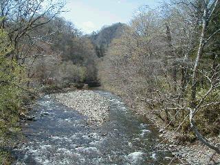 ここで良く釣る。向こうは美笛のキャンプ場。山は丹鳴山。札幌の水瓶、豊平峡に
