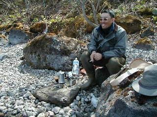 :午後からヒメマス橋に出かける。ここは沢をつたって降りていく難コースであ
