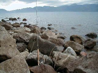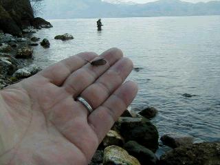 昼から2時間、湖にたちこんだ。が、あたりはなかった。フライを深く沈めて釣っていた