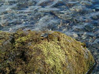 岩の上にヤンマ。周りは深さ30cmほどの浅瀬。