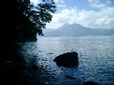うだ。湖畔は水かさが一段と増し、山の縁ぎりぎりまで水がある。大岩に上ってみると、