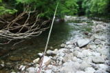 白老川本流に残っている良型ヤマメ 2012/08/12 sun 曇り 24℃ 16:00-17:00 フライのアイが見えない苦痛を克服すべく、拡大鏡をメガネにセットしたが、効果は今ひとつ。まだ、先は続く。 日曜日の夕方、出かけた白老川本流は、驚いたことにこの春あたりの大雨や増水で、渓相が変わっている。ドロノキの大木がごろんと横になっているところから始めた。思いのほかヒットして、30mも歩かないで1時間が過ぎた。ていねいにプレゼンテーションしたのがよかった。ちゃんと15cm上が残っている。 最後の20cmクラスはジョーズのようにゆっくりガバリとやってきて、ウインドノットであわせ切れしてしまった。来週も来ようと言う気にさせられる。 |